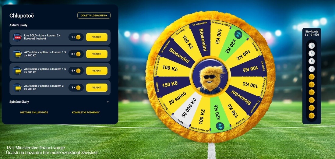 - Do promo akce s kolem štěstí Chlupotoč se mohou zapojit pouze plně registrovaní hráči na portálu Allwyn. Je třeba mít zcela aktivní ověřené konto.