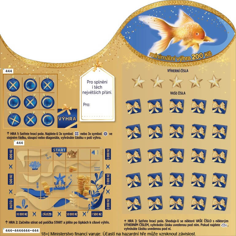Papírový stírací los Vánoční Zlatá rybka koupíte na jakémkoliv prodejním místě (v ČR jich je přes 7 200). Po zakoupení na vás čekají 3 hry s jednoduchými pravidly.